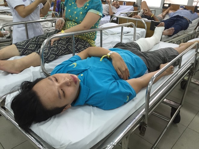 Theo các bác sĩ khoa Cấp cứu, bà Tám bị đa chấn thương phần mềm, đang được chụp X-Quang, CT để theo dõi Còn anh Lộc bị gãy chân và bị thương nhẹ ở phần đầu.