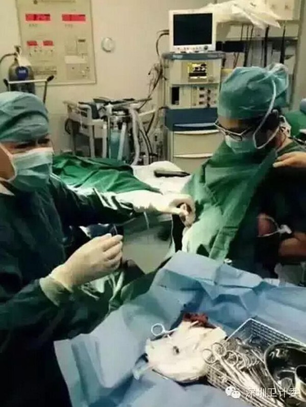 Ngày 29/9, tại phòng phẫu thuật bệnh viện Trung tâm khu mới Quang Minh, thành phố Thâm Quyến, tỉnh Quảng Đông, Trung Quốc, trong lúc các bác sĩ tiến hành gây mê cho cháu bé mới chỉ vài tháng tuổi, cháu bé không ngừng gào khóc khiến các bác sĩ không biết phải làm sao.