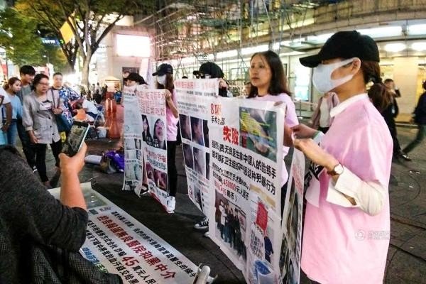 Những phụ nữ Trung Quốc cầm biểu ngữ tố cáo các trung tâm thẩm mỹ ở Seoul, Hàn Quốc.