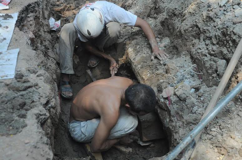 Công nhân đào đường thoát nước phát hiện nhiều bộ hài cốt nằm ở độ sâu khoảng 80cm.
