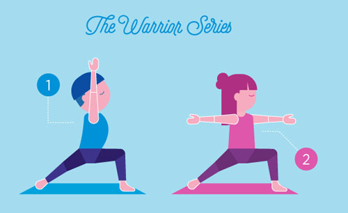 Tư thế chiến binh 1 và 2 thích hợp cho người mới bắt đầu tập. Trẻ có thể thực hiện những độc tác này với tiếng hét giống như một chiến binh ra trận với kiếm và áo giáp. Động tác này giúp tăng sức mạnh và sức bền.