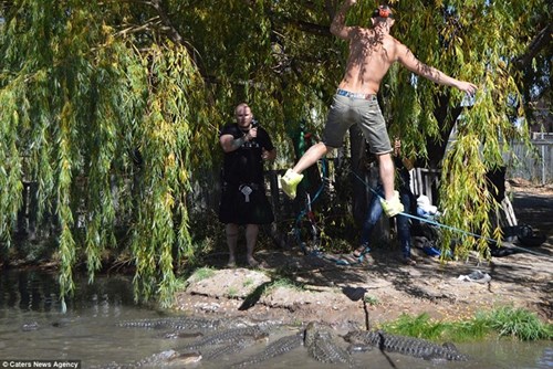 Josh Beaudoin, 33 tuổi khiến người xem “thót tim” với màn mạo hiểm đi bộ trên dây qua đầm cá sấu khổng lồ ở Colorado. Chưa kể đến khả năng rơi xuống làm mồi cho cá sấu, mà việc này còn kích thích bản năng săn mồi của các sát thủ đầm lầy, chúng có thể lao lên đớp anh chàng bất cứ lúc nào.