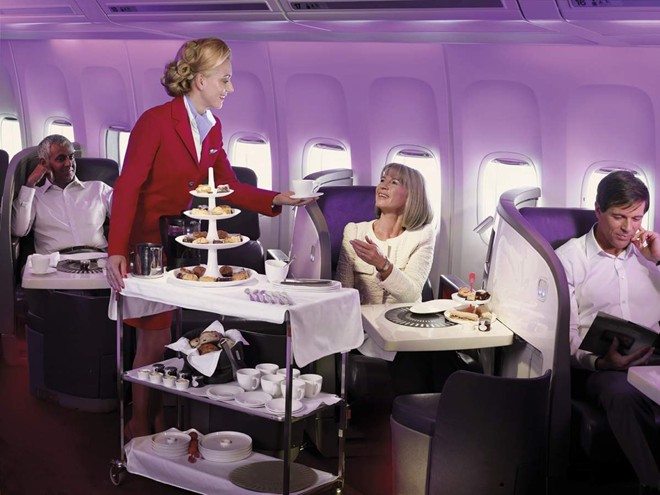 4. Virgin Atlantic (80.235 lượt bình chọn): Virgin Atlantic đạt điểm cao nhất trong các dịch vụ cho hành khách, đơn giản như ánh sáng dễ chịu và cocktail miễn phí. Hành khách hạng phổ thông đặc biệt hay hạng nhất có thể thưởng thức những bữa ăn nhiều món và sử dụng đồ uống ở quầy bar riêng.
