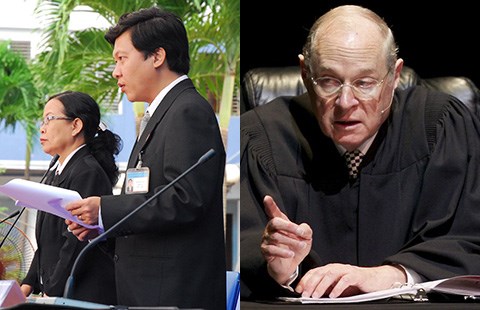 Sắp tới, thay vì mặc veston như hiện nay (ảnh trái), thẩm phán nước ta sẽ mặc áo thụng đen như quan tòa nước ngoài (ảnh phải). Ảnh minh họa