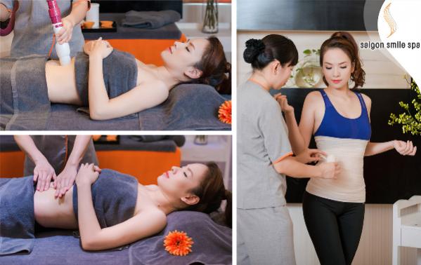 Để kết hợp làm tan mỡ thừa, kể cả những loại mỡ khó tan bên trong cơ thể, Saigon Smile Spa phải sử dụng loại kem giảm béo đặc trị của tập đoàn thẩm mỹ Nhật Bản McCoy. Khi thoa lên da và kết hợp làm tan mỡ cùng các máy công nghệ cao, các động tác massage, loại kem này sẽ được đẩy sâu và thẩm thấu vào trong da, làm mềm, đốt cháy các mô mỡ dưới da. Chính vì vậy người dùng sẽ có cảm giác ấm nóng đặc biệt từ bên trong. Còn ở cách quấn bằng nilon nói trên, phần lớn các thành phần trong hỗn hợp được quết lên cơ thể đều là các thành phần có tính nóng như mật ong, mù tạt, gừng, tinh dầu quế… Bởi vậy, thực ra, cảm giác nóng rát mà bạn cảm nhận được trong quá trình quấn là do làn da phản ứng với các loại sản phẩm có tính nóng, không phải “cảm giác đốt mỡ” như nhiều người lầm tưởng.