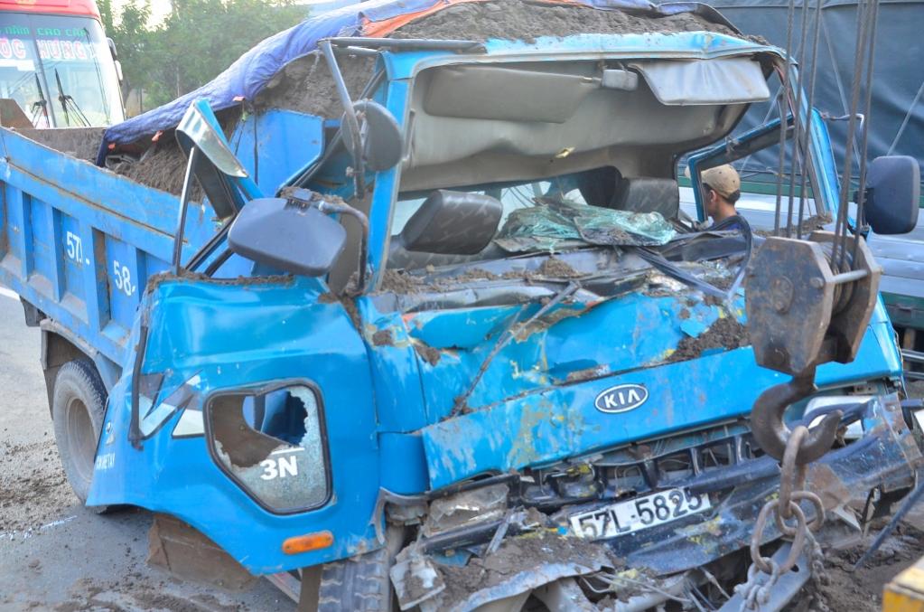 Thông tin ban đầu, thời điểm trên, xe ben chở đầy đất mang BKS 57L – 5825 lưu thông tốc độ cao trên quốc lộ 1 hướng từ vòng xoay An Lạc về ngã tư An Sương.