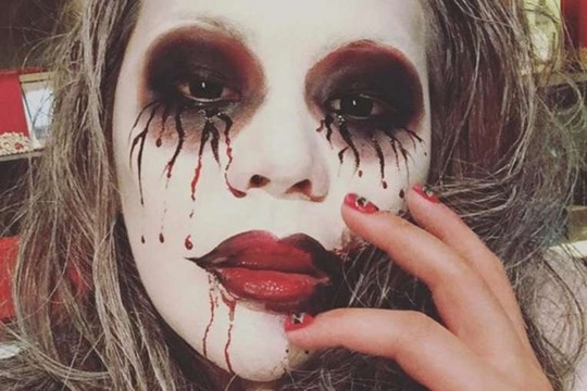 Lúc bấy giờ, Lương Tề Hân đang mải mê với tiệc Halloween, cô hóa trang thành ma cà rồng với trang phục quái dị.