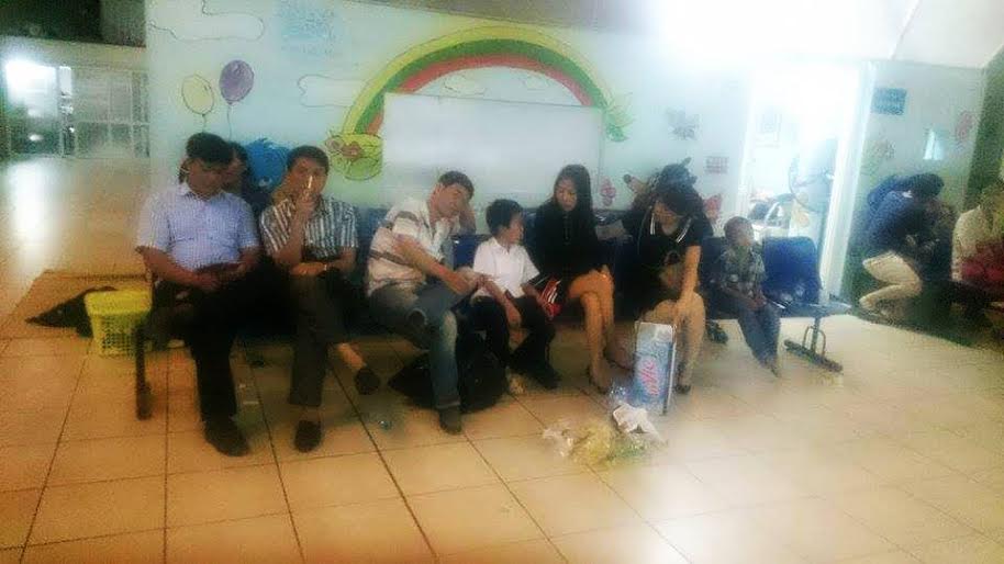 Phụ huynh ngồi chờ các con được cấp cứu tại Trung tâm Chống độc, Bệnh viện Bạch Mai tối 4.11.
