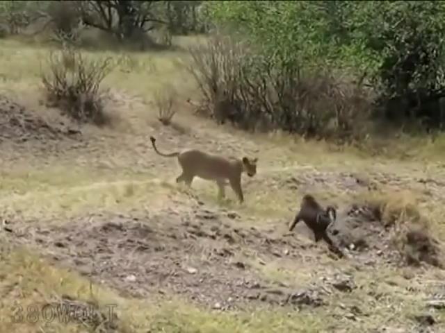 VBF-Clip ghi lại hình ảnh 1 con khỉ đầu chó đang tỏ ra rất chủ động xua đuổi 1 con sử tử. Thế nhưng dường như nó đã quên mất rằng sư tử luôn sống bầy đàn và chúng rất mạnh khi cùng nhau...