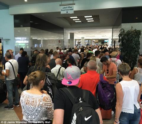 Hiện có hàng ngàn du khách Anh đang chờ đợi ở sân bay này, một tuần sau khi vụ rơi máy bay Nga. Ảnh: Daily Mail