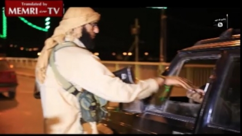 Phiến quân Hồi giáo có vũ trang đi phát kẹo cho người đi đường. (Ảnh cắt từ clip)