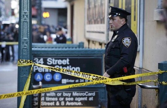 Nhà ga Penn ở Manhattan là trung tâm giao thông quan trọng của New York. Đường phố quanh khu vực này đã bị phong tỏa.