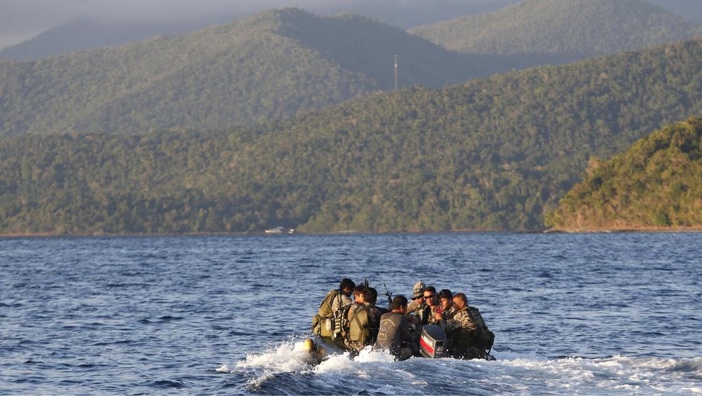 Lính hải quân Philippines ở khu vực Bãi Cỏ Mây. Indonesia đang đòi hỏi Trung Quốc làm rõ "đường 9 đoạn" tại Biển Đông.