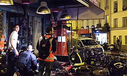 Những kẻ tấn công xả súng AK-47 vào quán, sát hại 5 người. "Có ít nhất 5 người nằm chết quanh tôi hoặc ở trên đường phố, máu chảy khắp nơi. Tôi thật may mắn khi thoát chết", Mathieu, một nhân chứng tại hiện trường, nói.