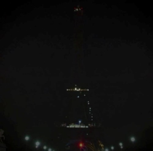 Tháp Eiffel tắt đèn để tưởng nhớ nạn nhân trong cuộc tấn công liên hoàn đêm 13/11. Ảnh:Jon Swaine Twitter.