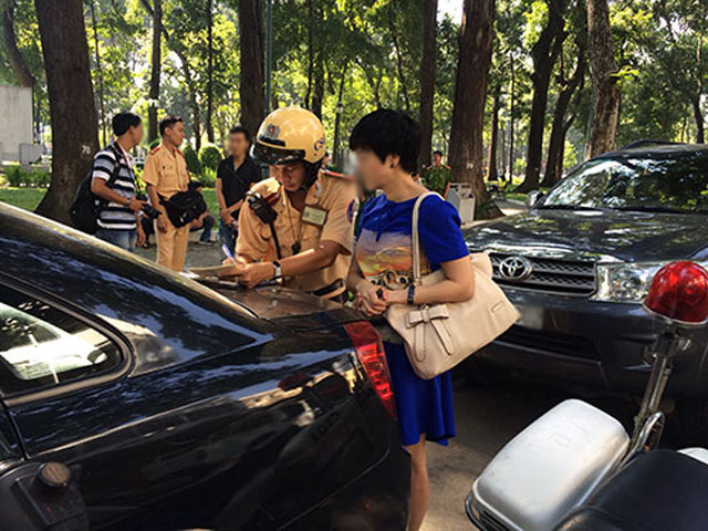 Điểm đầu tiên được đoàn kiểm tra nhắm tới là các tuyến đường trước Hội trường Thống Nhất, như đường Hàn Thuyên, Lê Duẩn, Alexandre de Rhodes... Chỉ trong chưa đầy 1 giờ, đã có hàng loạt trường hợp vi phạm lấn chiếm lòng đường, vỉa hè bị lập biên bản xử phạt. Đặc biệt, chỉ tính riêng đường Alexandre de Rhodes đã có cả chục tài xế ô tô phải “ngậm ngùi” nhận biên bản xử phạt vì dừng, đậu sai quy định.