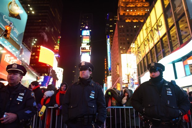 Cảnh sát New York canh gác quanh quảng trường Thời đại đêm giao thừa 2015. Ảnh: ​Getty
