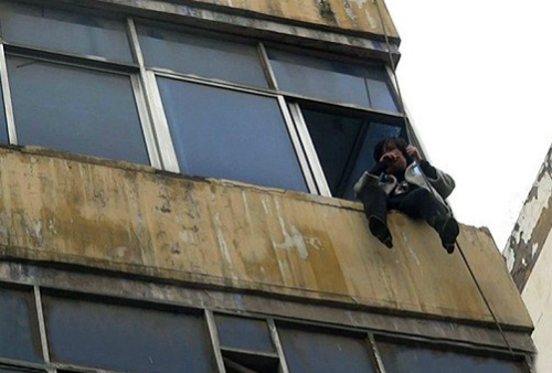VBF-Cuộc sống căng thẳng của TQ đã vô tình làm cho bao gia đình cũng bị ảnh hưởng theo. Chỉ vì những chuyện đơn giản không vừa ý nhau là mọi chuyện đều có thể xảy ra đang được cho là xảy ra ngày càng nhiều tại TQ.Người vợ Trung Quốc leo ra cửa sổ nhà mình ở tầng 4 và dọa nhảy xuống, sau khi chồng nấu cơm, chứ không phải là mỳ theo ý thích của cô.Những cuộc tranh cãi nhỏ giữa các cặp vợ chồng khi có thể biến thành trận chiến lớn, và chuyện một đôi vợ chồng ở Trung Quốc đã chứng minh điều này.Vụ việc xảy ra trưa 19/11 tại thị trấn Tiêu Tác, tỉnh Hà Nam, Trung Quốc. Bức ảnh hiện trường cho thấy người phụ nữ ngồi trên mép ban công, nhìn xuống đường phố đông đúc phía dưới, chân đung đưa sát tường. Theo những người chứng kiến, chị vợ đã rất kích động tại thời điểm đó. Chị kêu la là muốn tự tử.
