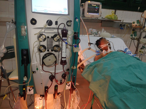 Ngày 23-11, PGS-TS Nguyễn Hữu Ước, Trưởng Khoa Phẫu thuật tim mạch - lồng ngực thuộc Bệnh viện (BV) Việt Đức, cho biết sau 1 tuần điều trị tích cực nhưng tính mạng của nạn nhân V.V.Q. (55 tuổi, ở huyện Thái Thụy, tỉnh Thái Bình) vẫn rất mong manh do tình trạng suy đa tạng (suy thận, suy gan) phải lọc máu liên tục.