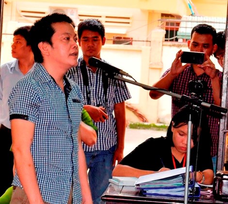 Trương Thành Chí tại phiên tòa xét xử nguyên đại úy Vinh. Ảnh. TIẾN DŨNG