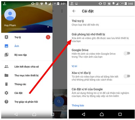 Để sử dụng tính năng này, từ giao diện ứng dụng của Google Photos trên smartphone/máy tính bảng, người dùng truy cập vào mục “Cài đặt”, sau đó chọn “Giải phóng bộ nhớ thiết bị”. Google sẽ tự động nhận diện những hình ảnh, video đã sao lưu lên Google Photos rồi xóa đi những hình ảnh, video đang có trên thiết bị của người dùng.