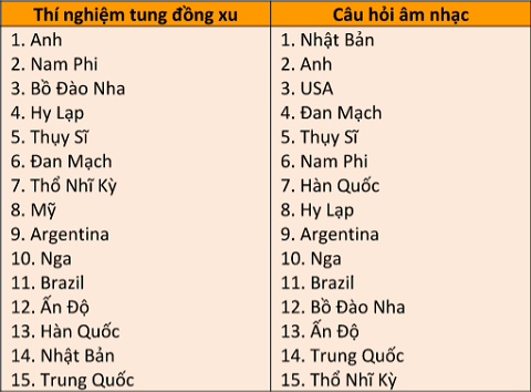 Cũng những người trên được yêu cầu trả lời các câu hỏi trắc nghiệm liên quan đến âm nhạc mà không được tra cứu câu trả lời trên mạng.