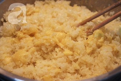 Dùng đũa trộn đều nhẹ tay, đậy nắp hấp thêm 5 phút nữa.
