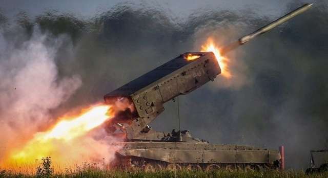Quân đội Syria trong tháng 10/2015 đang sử dụng tổ hợp pháo phản lực TOS-1 "Solntsepёk" ở tỉnh Latakia tấn công các tổ chức khủng bố trong khu vực địa hình đồi núi. Hỏa lực do Nga sản xuất còn nhằm vào lực lượng khủng bố Front Al Nursa. Đạn nhiệt áp làm tan chảy và giết chết mọi thứ trong bán kính nhiều mẫu Anh. Một đợt tấn công kéo dài 3 phút rockets là đạn nhiệt áp đã quét sạch hai tiểu đoàn cơ giới tại Zelenopillya. Dàn "Solntsepёk" phóng các tên lửa (rocket), phần đầu đạn nặng tới 30 kg, được làm đầy bằng chất gây cháy hoặc hỗn hợp thermobaric (áp nhiệt). Các hỗn hợp này tạo thành một đám mây khí dung, tạo ra các hiệu ứng áp suất, nhiệt độ cực cao phá hoại khi nổ .