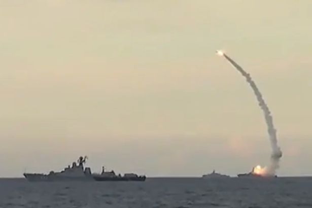 Tên lửa được bắn ra từ tàu chiến của Nga tại Địa Trung Hải (Ảnh: Reuters)
