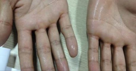 – Bàn tay có màu trắng xanh, lại có những gân xanh (tĩnh mạch) nổi lên, lúc nào cũng lạnh ngắt, nhớp nháp, ướt át mồ hôi, là dấu hiệu của suy nhược cơ thể, khí huyết xấu.