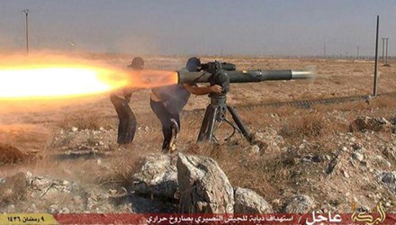 Hình ảnh công bố hồi tháng 6 cho thấy phiến quân IS sử dụng tên lửa chống tăng của Mỹ tại Syria (Ảnh: AP)