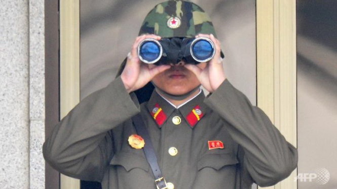 Một binh lính CHDCND Triều Tiên canh gác tại Bàn Môn Điếm - Ảnh: AFP