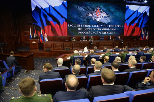 Tổng thống Nga trong cuộc họp với các quan chức quốc phòng hôm nay. Ảnh: Sputnik