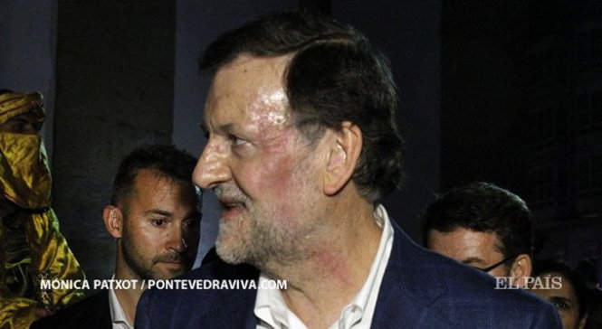Hôm qua 16-12, trong cuộc vận động tranh cử ở tây bắc Galicia, Thủ tướng Tây Ban Nha Mariano Rajoy bất ngờ bị một thanh niên 17 tuổi đấm vào mặt. Cú đấm mạnh làm vỡ kính và tím bầm cả mặt ông.
