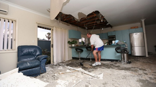 Trận lóc xoáy lịch sử xảy ra tại Úc hôm qua đã phá tan hoang vùng ngoại ô Sydney kéo theo nhiều chuyện dở khóc dở cười. Đó là có một gia đình ở TP Sydney - Úc vừa bán khỏi tay một căn nhà trị giá 800.000 USD vài giờ thì bị lốc xoảy phá hủy hoàn toàn. Bao nhiêu công xây dựng, chỉ một cơn giận của thiên nhiên, tất cả thành một đống hoang tàn.