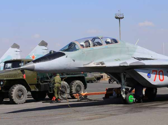 Máy bay tiêm kích đa năng MiG-29 của Nga tại căn cứ Erebuni ở Armenia Ảnh: MEDIAMAX.AM