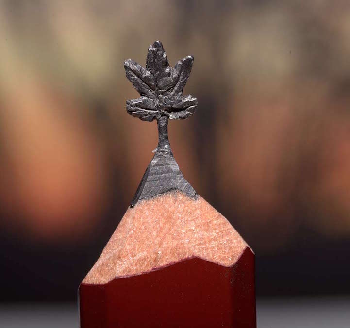 Sử dụng kính phóng đại và con dao X-Acto (một dụng cụ đẽo gọt giống hình cây bút gồm một lưỡi dao nhỏ và rất sắc gắn phía trên, chuyên dùng để chế tác mô hình), nghệ sĩ Cindy Chinn đến từ Mỹ đã tạo nên nhiều tác phẩm tí hon cực kì tỉ mỉ từ phần lõi của cây bút chì.