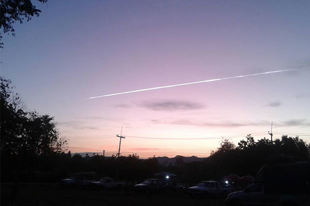 Hình ảnh và video về vệt sáng lạ lan truyền với tốc độ chóng mặt trên mạng Internet. Chuyên gia Saran Poshayachinda, phó giám đốc Viện Nghiên cứu thiên văn quốc gia Thái Lan, cho rằng đây có thể là một mảnh vỡ từ tên lửa Nga rơi xuống trái đất chứ không phải là sao băng.