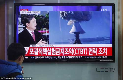 Hình ảnh về vụ thử bom nhiệt hạch được phát sóng trên truyền hình. (Ảnh: Xinhua)