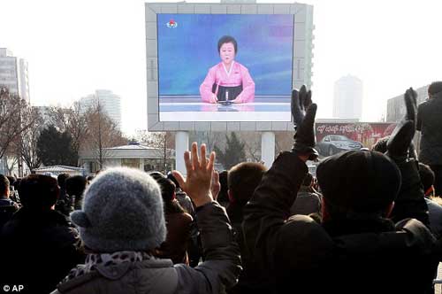 Người dân Triều Tiên theo dõi tin tức về vụ thử qua màn hình lớn ở Ga Bình Nhưỡng. (Ảnh: AP)