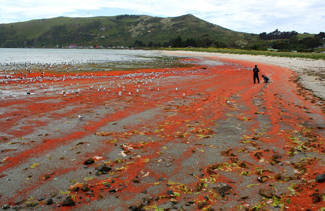Vietbf.com - Bạn nhìn cảnh tượng hàng triệu con tôm hùm đỏ trôi dạt vào bờ biển đất nước New Zealand tạo thành một tấm thảm đỏ chạy dọc quanh bờ biển thật đẹp mắt khiến bất cứ ai chiêm ngưỡng nó cũng không khỏi xuýt xoa khen ngợi.