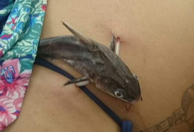 Cận cảnh hình ảnh con cá trê đâm vào da thịt của người phụ nữ đáng thương