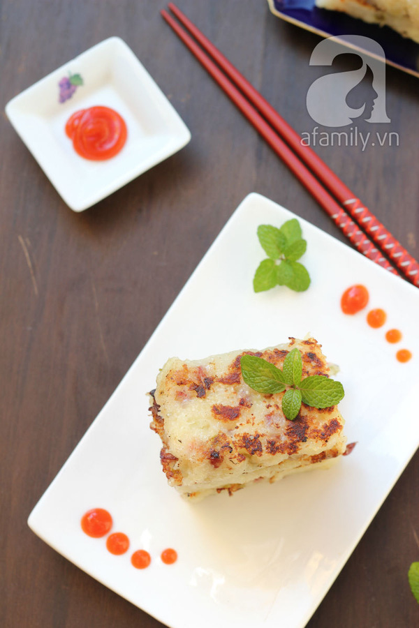 Bánh sau khi đã hấp xong, chờ nguội hẳn rồi cho vào tủ lạnh cho bánh cứng lại. Khi ăn lấy ra cắt từng miếng nhỏ rồi chiên vàng hai mặt trước khi ăn. Chấm kèm với tương ớt hoặc tương xí muội.