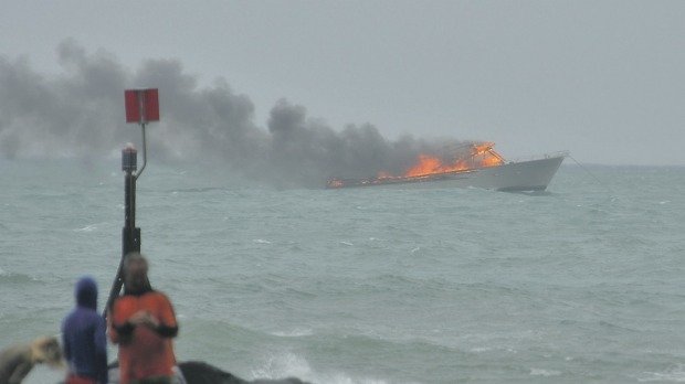 Old  Default Tàu cháy, hành khách hoảng loạn nhảy luôn xuống biển