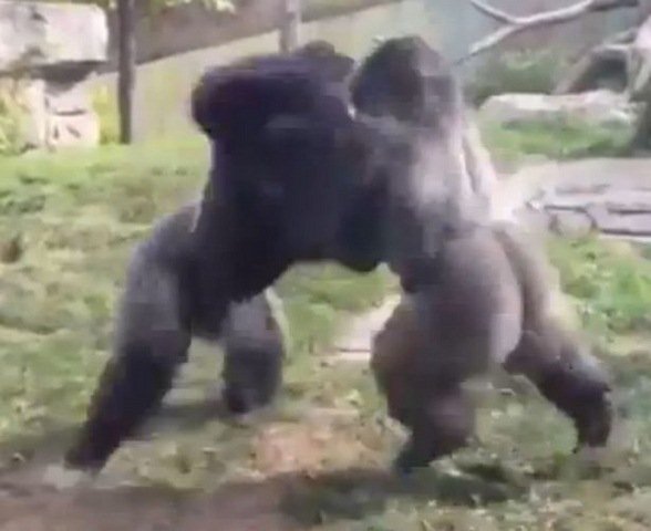 Đoạn phim được một khán giả ghi lại khi hai chú khỉ đột hùng hổ lao vào nhau đấm túi bụi ở vườn thú Henry Doorly tại thành phố Omaha, bang Nebraska.