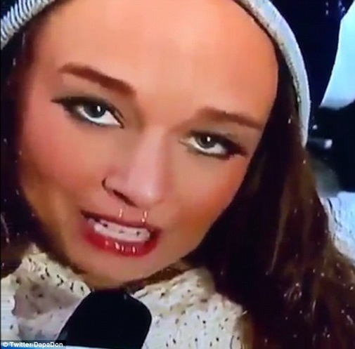 Khi đang mải mê đưa tin về tình hình diễn biến thời tiết tại khu vực xảy ra trận bão tuyết trước ống kính máy quay, thật không may do điều kiện thời tiết quá lạnh đã khiến nữ phóng viên bị chảy nước mũi.