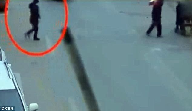 Bà Li đang sang đường, không hề biết thảm kịch sắp xảy ra với mình. (Nguồn: dailymail.co.uk)