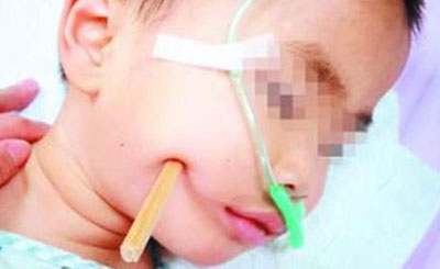 Một em bé 2 tuổi rưỡi ở thành phố Đông Quản, tỉnh Quảng Đông, Trung Quốc trong lúc ngã xuống sàn nhà, đã bị đũa đâm xuyên qua má và chạm tới hộp sọ.