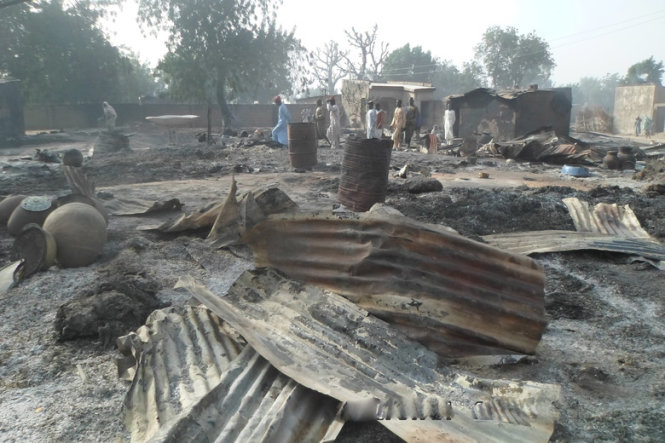 Hiện trường các ngôi nhà cháy đen sau vụ tấn công của Boko Haram vào ngôi làng Dalori của Nigeria - Ảnh: AP