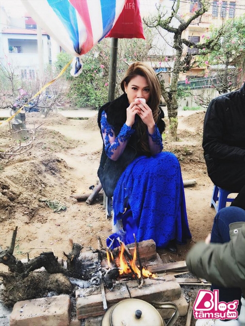 Trong những ngày lạnh nhất, Thanh Thảo phải đốt củi sưởi ấm khi chụp hình